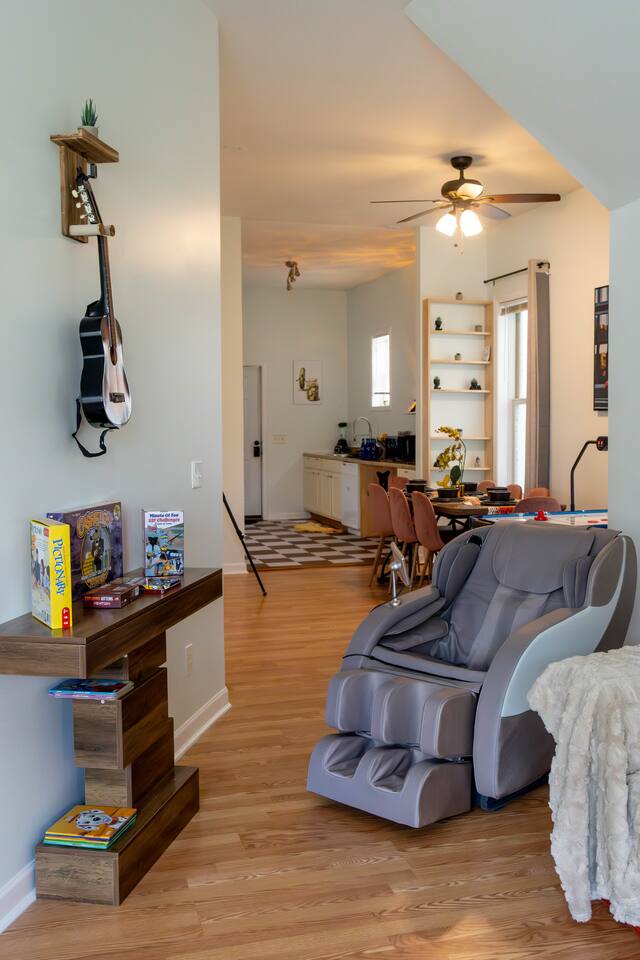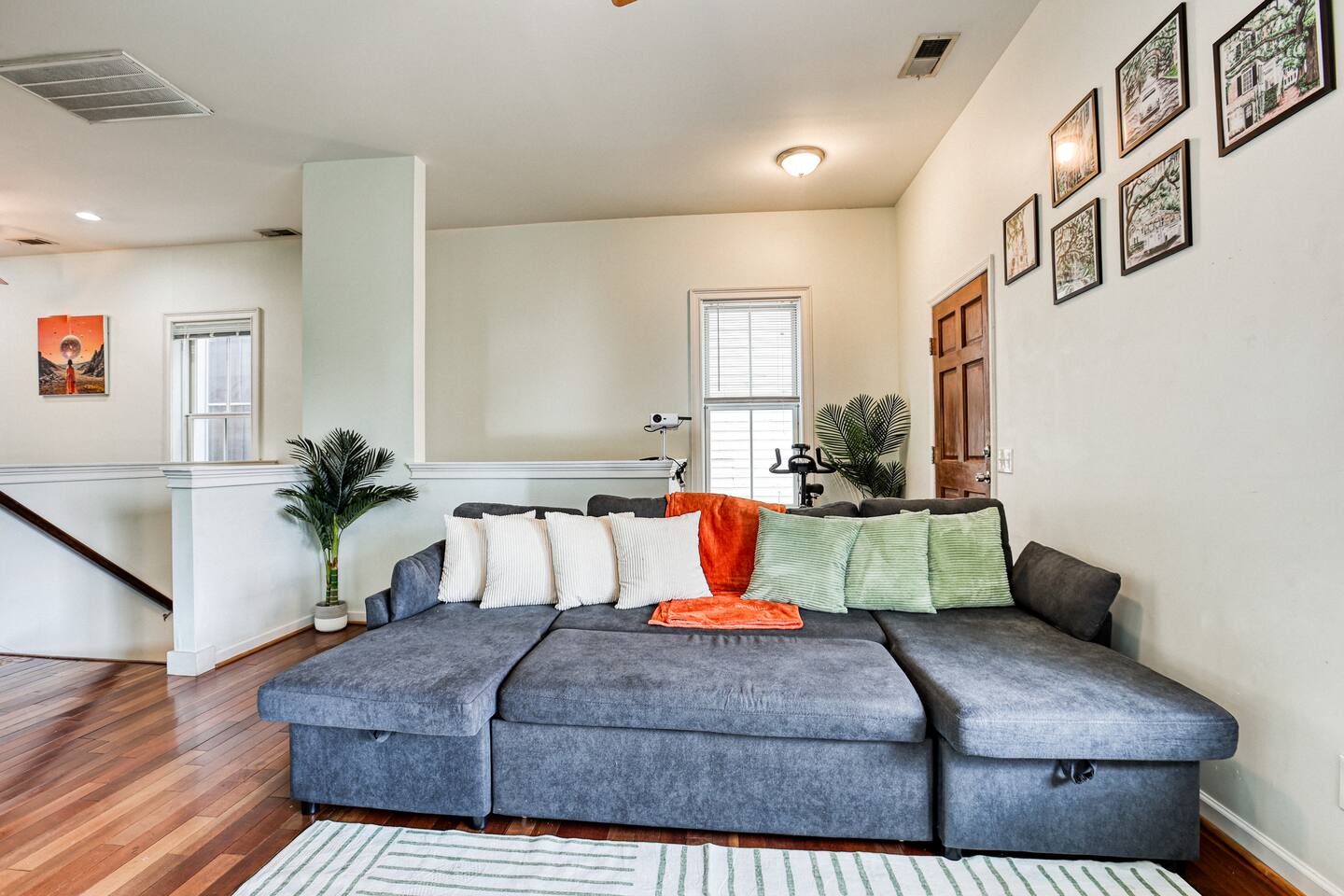 • Duplex Layout, sleeps up to 14 — 4 king bedrooms + 3 sofa beds • 2 fully equipped kitchens for group meals • 2 living rooms with projectors & smart TVs for movie nights • Massage chair and in-home fitness setup for relaxation and wellness • Games for all ages — air hockey, foosball, board games, telescope • 2 private balconies for coffee or evening relaxation • 5 minutes to Downtown Savannah, Forsyth Park, and River Street • Early check-in / late check-out available (subject to availability and a small fee) • Loyalty rewards program for repeat guests This Isn’t Just a Stay, It’s a No-Brainer! Book now to experience the perfect blend of comfort and adventure in the heart of Savannah!