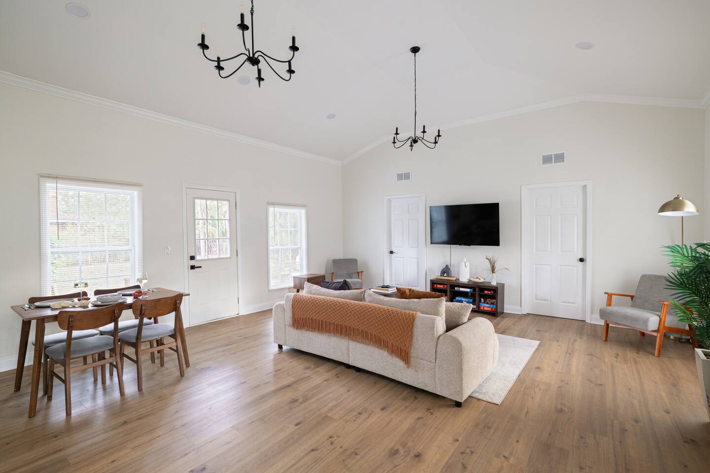 Welcome to Savannah, proudly hosted by Together Oasis Homes. This recently renovated Savannah vacation home is located just minutes from Downtown Savannah, Forsyth Park, and SCAD. Enjoy a private fenced backyard with café lighting, a fully equipped kitchen, smart TVs, high-speed WiFi, plush memory foam beds, and free parking. Ideal for families, groups, and travel nurses for both short and long stays, with easy access to River Street, major hospitals, the airport, and Tybee Island Beach.