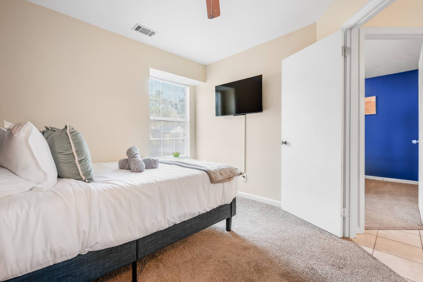 REACH OUT IF DATES AREN’T AVAILABLE Escape to your perfect Savannah retreat offering the ideal space for up to 9 guests. 🌟 HIGHLIGHTS 🌟 • King Suite + Queen + Bunk + Sofa bed — all with TVs and premium bedding • Fast Wi-Fi, smart home features, and full kitchen • Game arcade, board games, and books for all ages • Family-ready: Pack ’N Play, toys, and corner guards • Stair-free access and free parking • Bathrooms with plush towels and premium toiletries 🎁 Loyalty Perks: Exclusive rewards for repeat guests ✨ Bonus: Early check-in or late check-out available (subject to availability and a small fee) 📅 Perfect for both short-term getaways and mid-term stays, don’t wait—book your Savannah escape today!